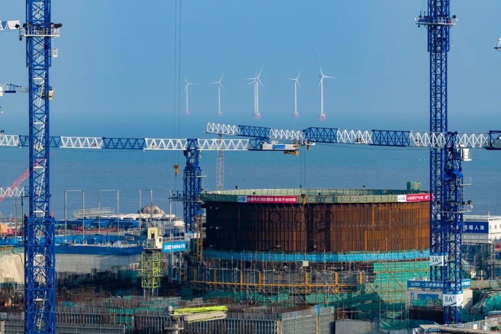 12月15日,浙江宁波象山县金七门核电项目建设现场,机械轰鸣,实施工程人员有序作业。章勇涛摄
